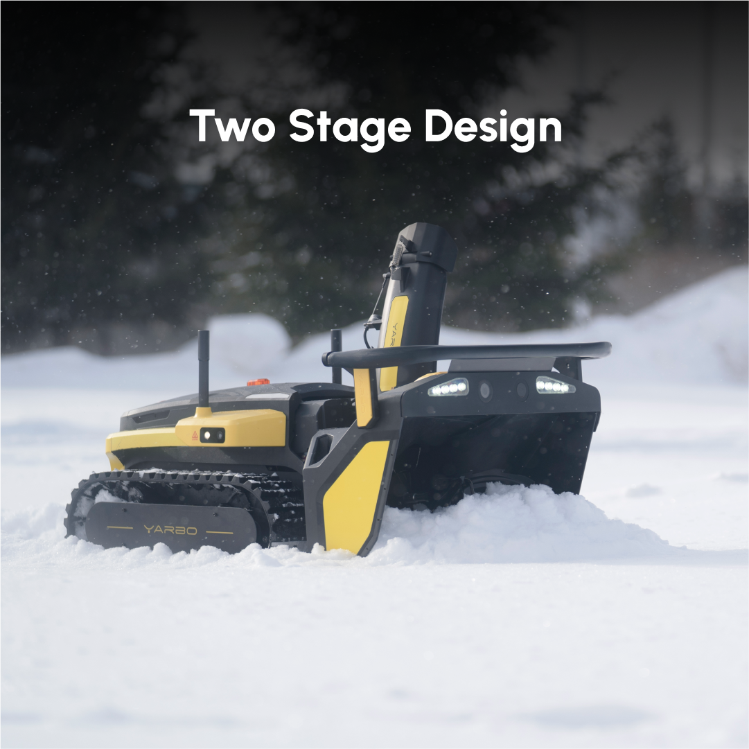 De flexibele uitworp-pijp is verstelbaar met een deflectorhoek van -5° tot +55° en een rotatie van -10° tot 190°. Daarmee werp je sneeuw gecontroleerd weg binnen een afstand van 1,82 tot 12,19 meter. De rupsband is ontworpen voor stabiele tractie op gladde ondergrond en in combinatie met krachtige motoren beweegt de Yarbo sneeuwblazer robot soepel over ruw terrein.