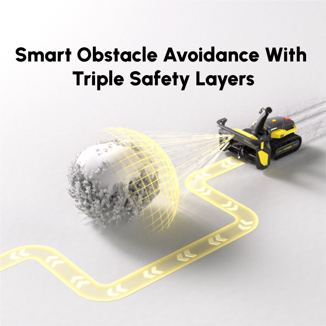 Deze sneeuwruimende robot is uitgerust met slimme obstakelvermijding op basis van radar en drie camera’s. Daardoor herkent de Yarbo sneeuwfrees obstakels binnen 1,5 meter recht vooruit en tot 5 meter aan de zijkanten.